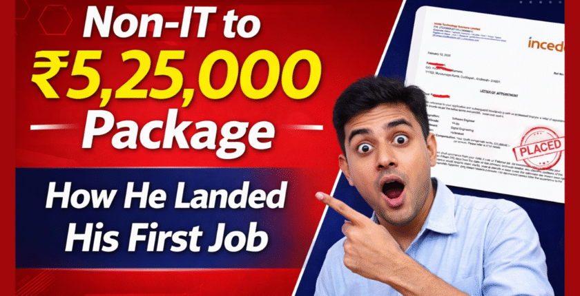 From Non-IT Background & 2 Year Gap to ₹5,25,000 Per Annum How He Landed His First Job After Multiple Rejections : It’s difficult enough to break into the IT sector without any technical experience. The odds seem improbable when you factor in a two-year professional lapse and several interview rejections. Many grads nowadays deal with this reality: they are gifted and diligent, but they are consistently turned down because they lack experience, organized preparation, or interview confidence.