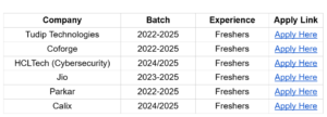 Multiple Recruitment drive for freshers 2022- 2026 candidates can Apply