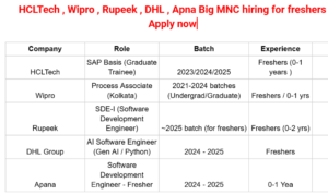 HCLTech , Wipro , Rupeek , DHL , Apna Big MNC hiring for freshers Apply now