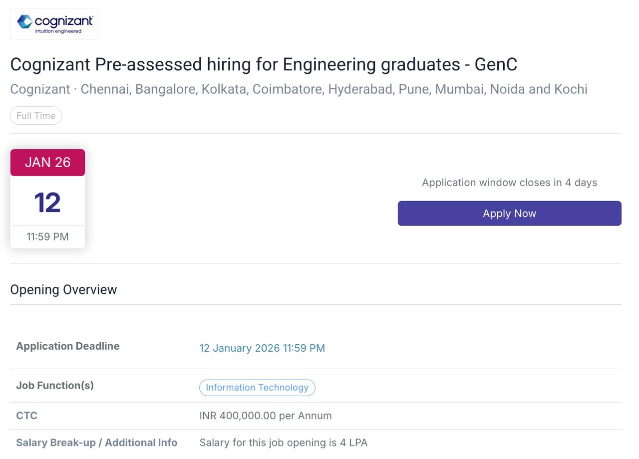 Cognizant Superset registration for Pre-assessed hiring for Engineering graduates – GenCv 2024 & 2025 batch apply now . This is a great opportunity for freshers and early-career professionals looking to kickstart their journey in a global IT services company. The position is based in India and eligible candidates are encouraged to apply online at the earliest. The detailed eligibility criteria and application process are given below. Also Apply All Active Superset Hiring For Freshers